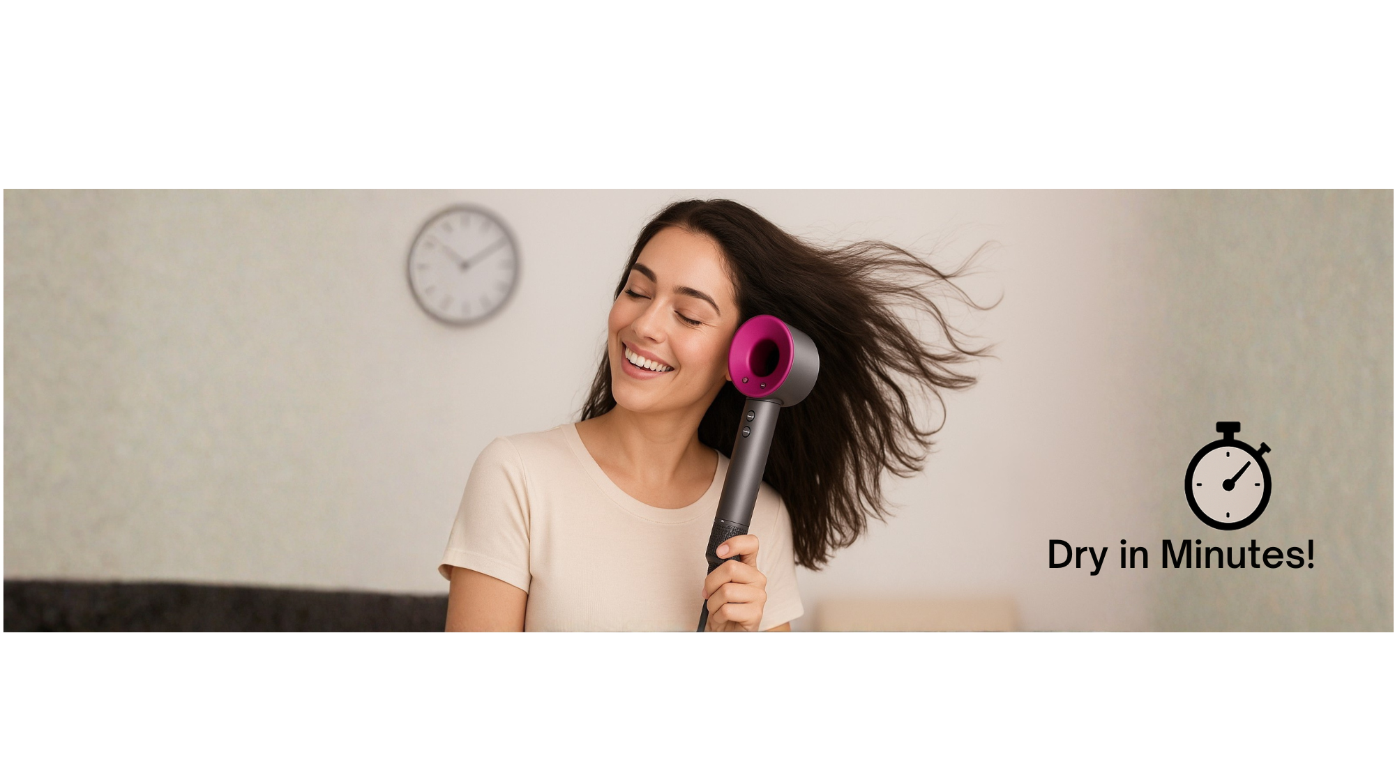 HaloStream's powerful 110,000 RPM motor and 27m/s airflow (that's 60mph!) deliver significantly faster drying, often reducing your drying time by up to 85%.